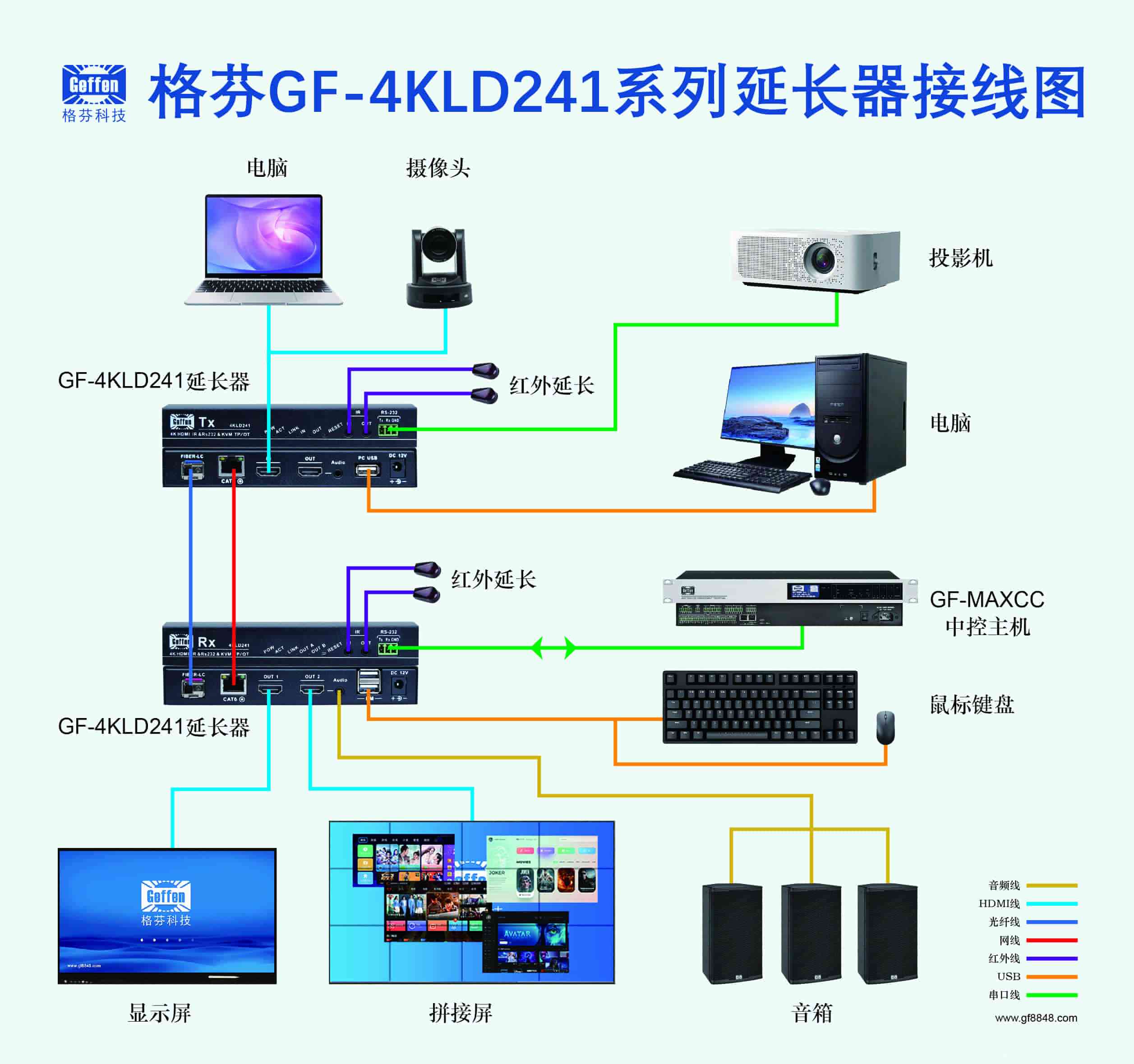 综上,这款格芬GF-4KLD241 4K60光网一体带KVM光纤传输器,集齐双模式长距传输、KVM远程操控、高清信号保真传输、多元化控制、稳定防护等全维度需求,既贴合市场对格芬传输器厂家、格芬4K延长器价格等核心需求痛点,又延续了格芬产品稳定、专业的特质,同时凭借20KM光纤传输、100m网线POC供电等特色功能,进一步拓宽场景适配范围。无论是中小型会议室的音视频信号传输,还是指挥中心、机房的长距KVM管控,这款格芬GF-4KLD241传输器都能凭借全面的功能、稳定的表现,成为音视频系统的核心支撑,助力各行业实现信号传输的智能化、便捷化升级,进一步巩固格芬在信号传输领域的核心地位。