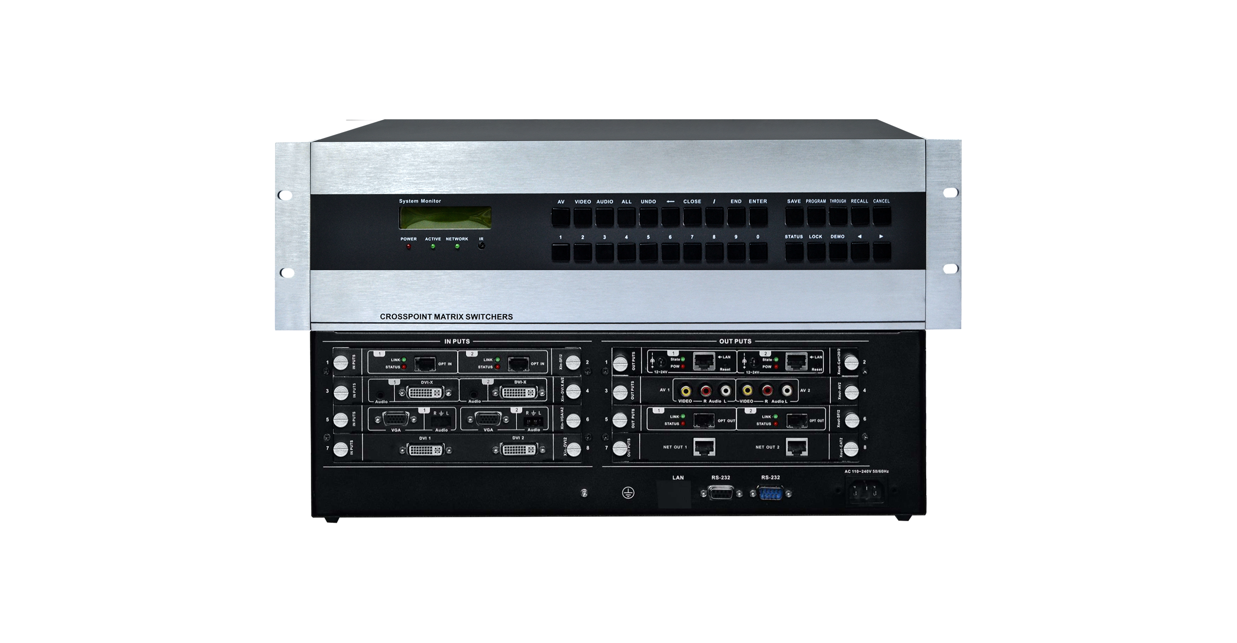 ●输入输出:最大支持16路信号输入,16路信号输出。支持嵌入式多通道数字音频信号的交叉切换。