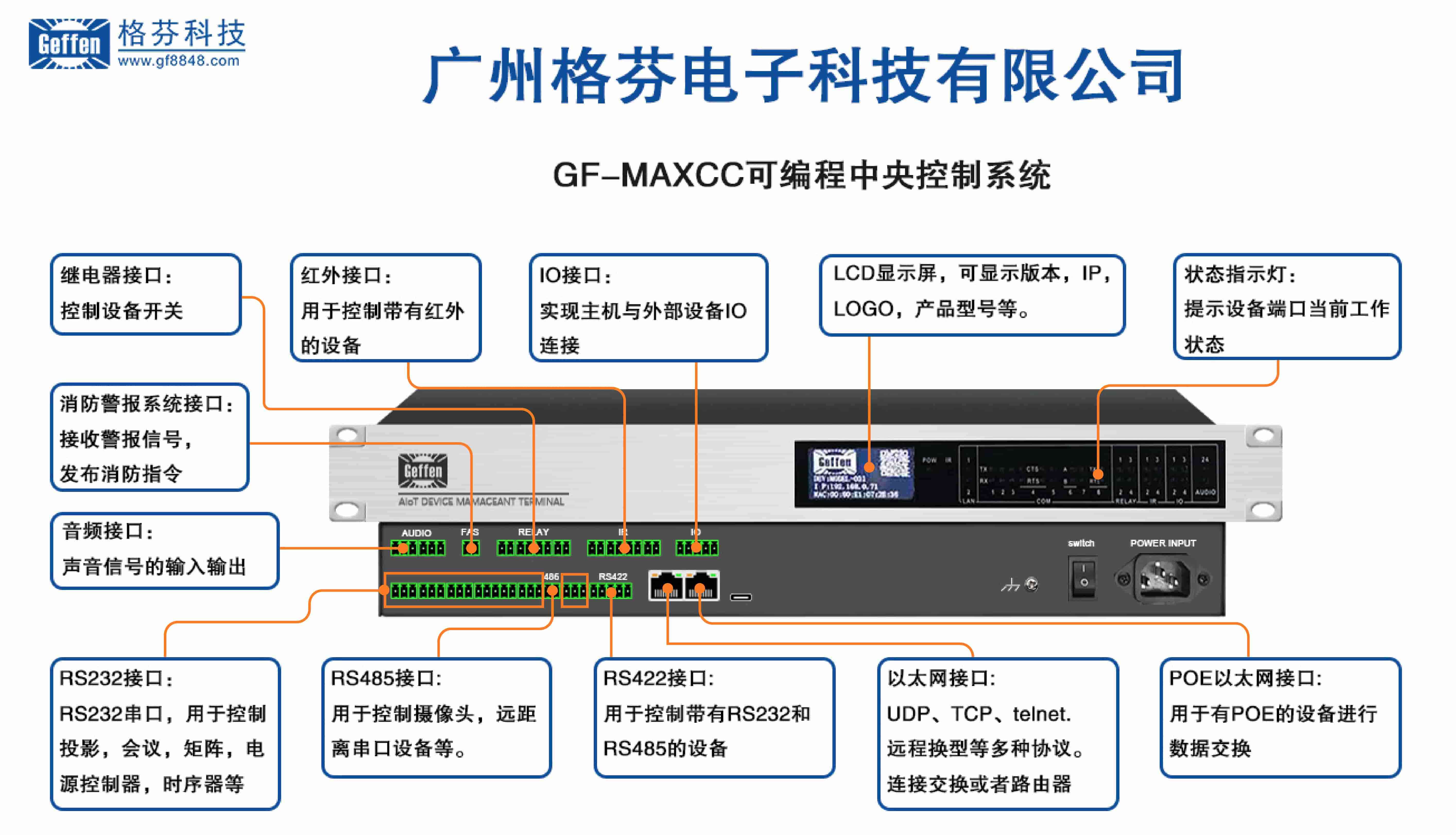 •多种通信:支持RS-232、RS-422、RS-485、ModBus、TCP服务/客户端、UDP、HTTP、PJLINK、Websocket,可扩展Zigbee通讯、KNX通讯;