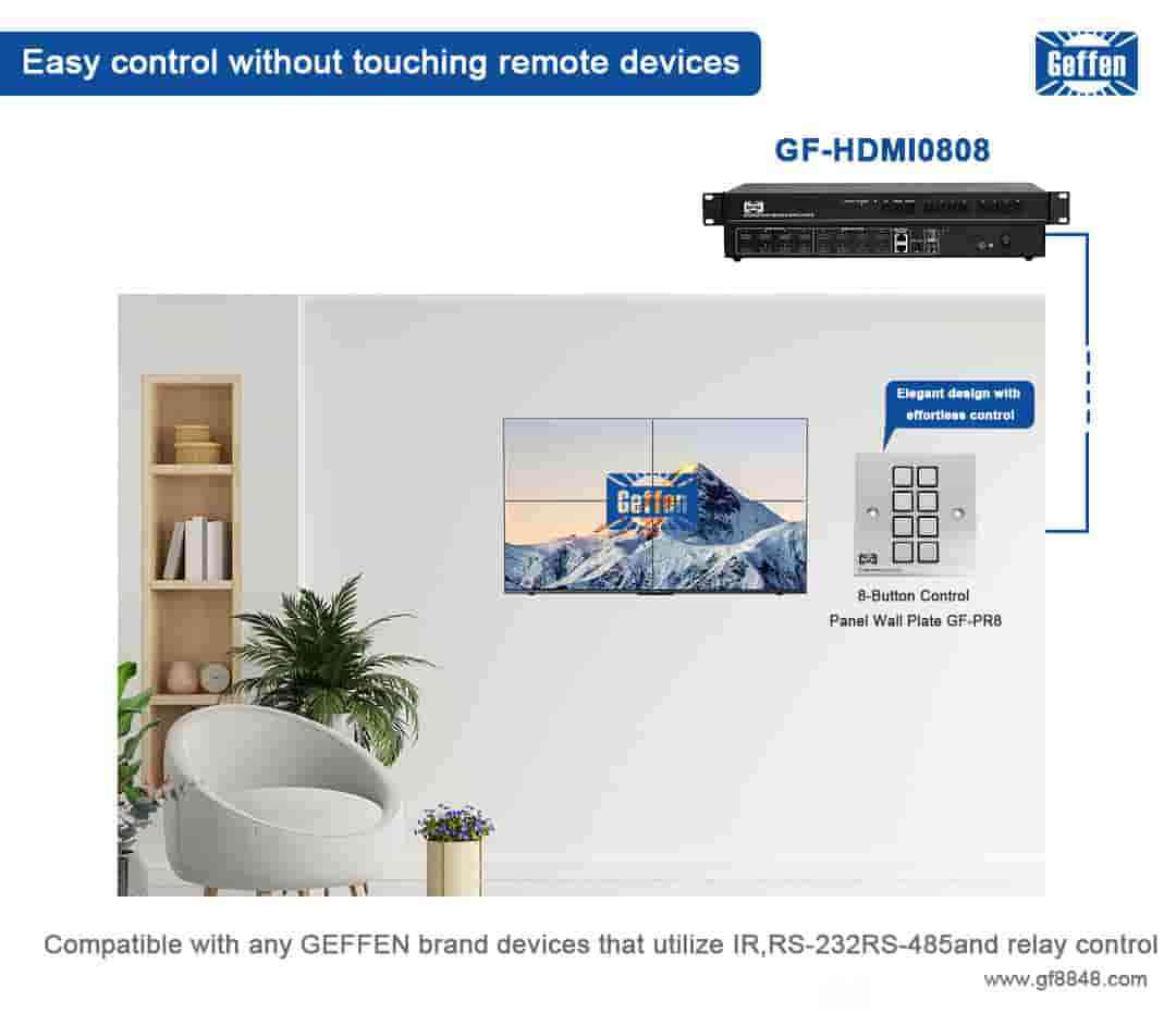 集成度高:GF-PR8集成了多种控制功能,如音视频切换、灯光控制、环境调节等,有效减少了设备的数量和布线复杂度,降低了系统成本。