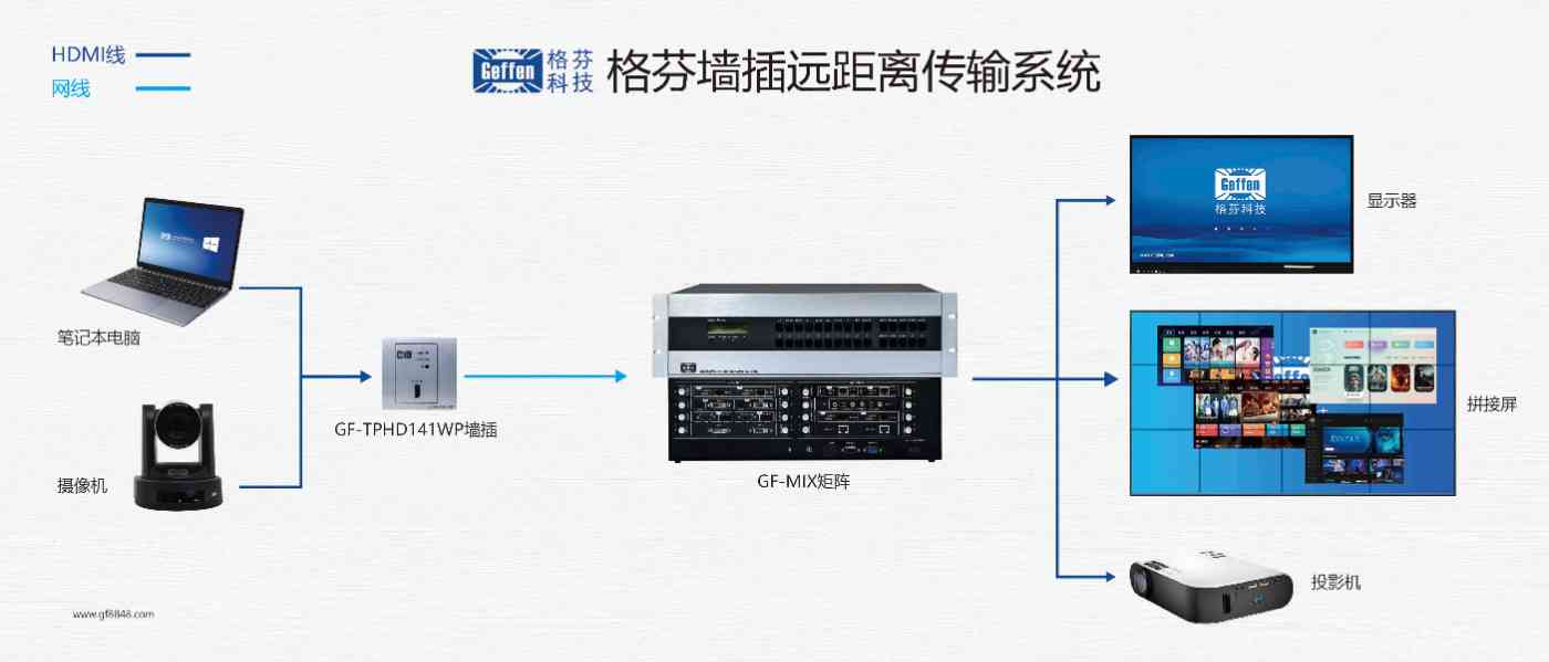 支持输入信号有:1路HDMI视频信号,1路VGA视频信号,1路与VGA视频同步切换的音频信号。